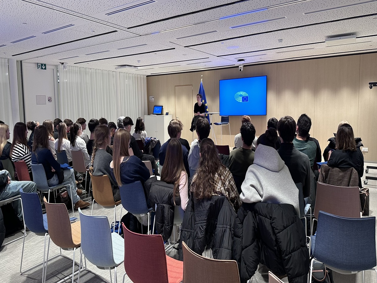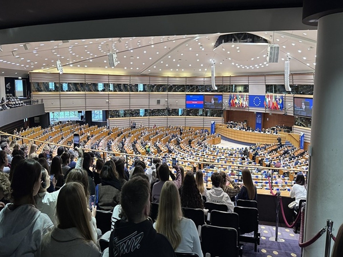 Am zweiten Tag fand eine Exkursion nach Brüssel statt, die An- und Abreise erfolgte mit dem Bus. Vor Ort führte die Gruppe zunächst ein Gespräch mit einem Abgeordneten des Europäischen Parlaments, bei dem die Schülerinnen und Schüler ihre vorbereiteten Fragen stellen konnten. Anschließend folgte eine Besichtigung des Plenarsaals von der Besuchertribüne aus. Danach besuchte die Gruppe das Parlamentarium, ein interaktives Museum zur Geschichte und aktuellen Arbeit der Europäischen Union. Zum Abschluss erhielten die Schülerinnen und Schüler Freizeit, um die Stadt auf eigene Faust zu erkunden, bevor die Rückfahrt zur Marienschule Opladen erfolgte.